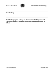 "title": "WD 3 - 264/15 Zur Übertragung der Leitung des Bundesamtes für Migration und Flüchtlinge auf den Vorstandsvorsitzenden der Bundesagentur für Arbeit",