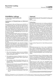 "content": "Bayerischer Landtag 16. Wahlperiode Drucksache 16/6890 11.02.2011 Schriftliche Anfrage Antwort der Abgeordneten Isabell Zacharias SPD des Staatsministeriums für Wissenschaft, Forschung und vom 09.11.2010 Kunst vom 16.12.2010 Anerkennung von Prüfungsleistungen aus Diplomstudi engängen Vorbemerkung: Das Staatsministerium hat den in der Anfrage geschilderten Eine Studierende wollte zum Wintersemester 2010/2011 ih Fall und die sich auf die Praxis der Universität Erlangen re Prüfungsleistungen des abgeschlossenen Diplomstudien Nürnberg bei der Anrechnung von Studien und Prüfungslei gangs Sozialwissenschaften aus dem Jahr 2006 auf den Ba stungen beziehenden Fragestellungen der Universität zur chelor der Wirtschaftswissenschaften derselben Universität Stellungnahme übermittelt. Da die Universität aus diesen (FAU) und Fakultät (WiSo, heute ReWi), an der sie bereits Angaben keinen konkreten Bezug zu einer aktuellen Fallge studiert hatte, anrechnen lassen. Hintergrund dafür war, dass staltung herstellen konnte – Widersprüche oder Einwendun sie den Master für Wirtschaftspädagogik absolvieren wollte, gen gegen entsprechende Anrechnungsentscheidungen lie da es für sie keine andere Möglichkeit gab, sonst als Lehre gen der Universität nicht vor –, wird angeregt, die betreffen rin arbeiten zu können. de Studierende auf die Möglichkeiten an der Universität hin Da die Masterprüfungsordnung jedoch eine bestimmte An zuweisen, eine etwaige Anrechnungsentscheidung im Rah zahl an Credit Points eines wirtschaftswissenschaftlichen men eines Widerspruchsverfahrens oder durch die Hoch Studienfachs voraussetzt, sollte die Studentin die Punkte in schulleitung gesondert überprüfen zu lassen. Darauf hat der nerhalb des Bachelorstudiengangs nachholen. Um wiederum Präsident der Universität die Studierenden, gerade auch in die Studienzeit des Bachelors verkürzen zu können, stellte Reaktion auf die Studierendenproteste aus dem letzten Jahr, sie den Antrag, die bereits geleisteten Prüfungsleistungen, immer wieder hingewiesen und zugesagt, sich persönlich für die denen der neuen Prüfungsordnung entsprechen und auch eine transparente und großzügige Anrechnungspraxis einzu dieselben Professoren und Lehrstühle betreffen, anrechnen setzen. zu lassen. Die Bachelorprüfungsordnung der Universität Erlangen Zu den einzelnen Fragen darf wie folgt Stellung genommen Nürnberg für den Bachelor in Wirtschaftswissenschaften werden: gibt jedoch vor, dass keine Leistungen vorangegangener Stu diengänge angerechnet werden. Der Prüfungsausschussvor Zu 1.: sitzende lehnte also den Sonderantrag auf Anrechnung der Grundsätzlich gilt nach Art. 61 Abs. 4 Satz 2 BayHSchG, Leistungen ab. dass in anderen Studiengängen erbrachte Leistungen aner kannt werden, es sei denn, dass diese nicht gleichwertig sind. Ich frage die Staatsregierung: Die Hochschule hat eine Nichtanrechnung zu begründen (Grundsatz der Beweislastumkehr). Dies gilt auch für Leis 1. Mit welcher Begründung erkennt die Universität/Fakul tungen aus Diplomstudiengängen (auch an derselben Hoch tät die von ihr selbst abgehaltenen Prüfungen früherer schule). Diplomstudiengänge nicht an? Bei der Beurteilung der Frage, ob Gleichwertigkeit vorliegt, 2. Wie handhabt die technische Fakultät der FAU die An kommt es, wie auch die Ländergemeinsamen Strukturvorga rechnung der Prüfungsleistungen früherer DiplomInge ben für die Akkreditierung von Bachelor und Masterstudi nieursstudiengänge? engängen (Beschluss der Kultusministerkonferenz der Län der vom 10.10.2003 i. d. F. vom 04.02.2010) festlegen, die 3. Wie handhaben andere Universitäten Bayerns die An im rechnung früherer Diplomstudiengänge im Rahmen der Übrigen nach Art. 61 Abs. 2 Satz 3 Nr. 3 BayHSchG unmit Modularisierung? telbare Grundlage der Genehmigung von Studien und Prü 4. Können die Absolventen des neu eingeführten Bachelors fungsordnungen sind, alleine darauf an, ob hinsichtlich der Sozialökonomik der Fakultät ReWi an der FAU in den nachzuweisenden und der erworbenen Kompetenzen we Master Wirtschaftspädagogik wechseln? sentliche Unterschiede bestehen. Diese Kompetenzorientie a) Wenn nein, müssen sie dann den gesamten Bachelor rung wird auch in den Leitlinien zur Studiengangsentwick in Wirtschaftswissenschaften nachholen? lung der Universität ErlangenNürnberg1 ausdrücklich her b) Wenn ja, können die Studenten im Rahmen des Mas vorgehoben und ist Grundlage der dortigen Anrechnungs ters den wirtschaftswissenschaftlichen Anteil nach praxis. _________ holen? 1 vgl. unter http://www.unierlangen.de/einrichtungen/QMRecht/studienprogramm entwicklung/arbeitshilfen/grundlegendes/ Leitlinien FAU Endfassung 100211.pdf ______ Drucksachen, Plenarprotokolle sowie die Tagesordnungen der Vollversammlung und der Ausschüsse sind im Internet unter www.bayern.landtag.de Parlamentspapiere abrufbar. Die aktuelle Sitzungsübersicht steht unter www.bayern.landtag.de Aktuelles/Sitzungen/Tagesübersicht zur Verfügung.",