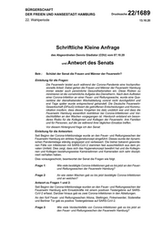 "content": "BÜRGERSCHAFT DER FREIEN UND HANSESTADT HAMBURG Drucksache 22/1689 22. Wahlperiode 13.10.20 Schriftliche Kleine Anfrage des Abgeordneten Dennis Gladiator (CDU) vom 07.10.20 und Antwort des Senats Betr.: Schützt der Senat die Frauen und Männer der Feuerwehr? Einleitung für die Fragen: Die Feuerwehr leistet auch während der Corona-Pandemie eine hochprofes sionelle Arbeit. Dabei gehen die Frauen und Männer der Feuerwehr Hamburg immer wieder auch persönliche Gesundheitsrisiken ein. Diese Risiken zu minimieren ist die vornehmliche Aufgabe des Dienstherrn. Nach dem Auftreten einer Corona-Infektion an einer Feuer- und Rettungswache, wurde eine Qua rantäne der diensthabenden Wachabteilung vorerst nicht durchgeführt und erst Tage später wurde entsprechend gehandelt. Die Deutsche Feuerwehr- Gewerkschaft (DFeuG) kritisiert die getroffenen Entscheidungen und Kommu nikation insofern, dass dieses Vorgehen bis dato unüblich war und dass die Feuerwehr Hamburg wesentlich restriktiver bei Corona-Infektionen und Ver dachtsfällen an den Wachen vorgegangen ist. Hierdurch entstand ein beson deres Risiko für die Kolleginnen und Kollegen der Feuerwehr, ihre Familien und für Personen, auf die sie während ihrer täglichen Einsätze treffen. Vor diesem Hintergrund frage ich den Senat: Einleitung für die Antworten: Seit Beginn der Corona-Infektionslage wurde an den Feuer- und Rettungswachen der Feuerwehr Hamburg ein striktes Hygienekonzept eingeführt. Dieses wurde der dynami schen Pandemielage ständig angepasst und verbessert. Die bisher bekannt geworde nen Fälle von Infektionen mit SARS-CoV-2 stammen fast ausschließlich aus dem pri vaten Umfeld. Dies zeigt, dass sich das Hygienekonzept bewährt hat und die Kollegin nen und Kollegen beziehungsweise Kameradinnen und Kameraden sich sehr diszipli niert verhalten haben. Dies vorausgeschickt, beantwortet der Senat die Fragen wie folgt: Frage 1: Wie viele bestätigte Corona-Infektionen gab es bis jetzt an den Feuer- und Rettungswachen der Feuerwehr Hamburg? Frage 2: An wie vielen Wachen gab es bis jetzt bestätigte Corona-Infektionen und an welchen? Antwort zu Fragen 1 und 2: Seit Beginn der Corona-Infektionslage wurden an den Feuer- und Rettungswachen der Feuerwehr Hamburg acht Einsatzkräfte mit einem positiven Testergebnis auf SARS- CoV-2 erfasst. Darüber hinaus gab es zwei Corona-Infektionen in den Abteilungen. An den fünf Feuer- und Rettungswachen Altona, Stellingen, Finkenwerder, Süderelbe und Berliner Tor gab es positive Testergebnisse auf SARS-CoV-2. Frage 3: Wie viele Verdachtsfälle von Corona-Infektionen gab es bis jetzt an den Feuer- und Rettungswachen der Feuerwehr Hamburg?",