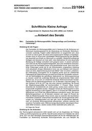 "title": "22/1084 SKA: Fachstellen für Wohnungsnotfälle: Datengrundlage und Controlling – Fehlanzeige?",