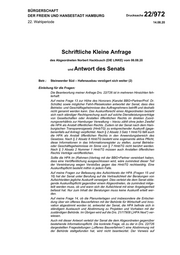 "content": "BÜRGERSCHAFT DER FREIEN UND HANSESTADT HAMBURG Drucksache 22/972 22. Wahlperiode 14.08.20 Schriftliche Kleine Anfrage des Abgeordneten Norbert Hackbusch (DIE LINKE) vom 06.08.20 und Antwort des Senats Betr.: Steinwerder Süd – Hafenausbau verzögert sich weiter (2) Einleitung für die Fragen: Die Beantwortung meiner Anfrage Drs. 22/726 ist in mehreren Hinsichten feh lerhaft: Auf meine Frage 13 zur Höhe des Honorars (Kanzlei BBG+Partner/Prof. Dr. Schütte) sowie möglicher Fahrt-/Reisekosten antwortet der Senat, dass dies Betriebs- und Geschäftsgeheimnisse des Auftragnehmers betrifft und deshalb nicht genannt werden kann. Das Auskunftsrecht eines Abgeordneten bezieht sich nach ständiger Rechtsprechung auch auf solche Dienstleistungsverträge von Gesellschaften oder Anstalten öffentlichen Rechts im direkten Zuord nungsverhältnis zur Hamburger Verwaltung – hierzu zählt ohne jeden Zweifel die HPA als Anstalt öffentlichen Rechts. Zudem ist der Senat nach dem Ham burgischen Transparenzgesetz (HmbTG) zu entsprechender Auskunft (gege benenfalls auf Antrag) verpflichtet. Nach § 2 Absatz 3 Satz 1 HmbTG fällt auch die HPA als Anstalt öffentlichen Rechts in den Anwendungsbereich des Gesetzes. Nach § 2 Absatz 8 HmbTG besteht eine sogenannte aktive Pflicht, diese Informationen in das Informationsregister zu stellen, zumal Betriebs- oder Geschäftsgeheimnisse im Sinne von § 7 HmbTG nicht berührt werden. Nach § 3 Absatz 2 Nummer 1 HmbTG müssen auch Anstalten öffentlichen Rechts Verträge veröffentlichen. Sollte die HPA im (Rahmen-)Vertrag mit der BBG+Partner vereinbart haben, dass eine Veröffentlichung ausgeschlossen wird, wäre zumindest dieser Teil der Vereinbarung wegen Verstoßes gegen das HmbTG rechtswidrig. Eine Auskunftspflicht besteht mithin in jedem Falle. Auf meine Fragen zur Befassung des Aufsichtsrats der HPA (Fragen 15 und 16) hat der Senat unter Berufung auf die Vertraulichkeit der Beratungen von Aufsichtsräten jegliche Auskunft verweigert. Dies verletzt die dem Senat oblie gende Auskunftspflicht gegenüber einem Abgeordneten, da zumindest mitge teilt werden muss, ob und wann sich der Aufsichtsrat mit einer Angelegenheit befasst hat. Nur zum Inhalt der Beratungen muss keine Auskunft erteilt wer den. Auf meine Frage 14, ob die Planunterlagen und insbesondere die Entschei dung über ein offenes Bauverfahren mit der Behörde für Wirtschaft und Inno vation abgestimmt worden ist, antwortet der Senat, die HPA befinde sich in ständigem Austausch und Abstimmung zu Projekten und Vorhaben mit der zuständigen Behörde. Im Übrigen wird auf die Drs. 21/17908 („HPA Next“) ver wiesen. Auch mit dieser Antwort verletzt der Senat die dem Abgeordneten gegenüber bestehende Informationspflicht. Die konkrete Frage, ob zu der in Drs. 22/726 dargestellten Fragestellungen („offenes Bauverfahren“) eine Abstimmung mit der Behörde stattgefunden hat, wird nicht beantwortet. Der Verweis auf",