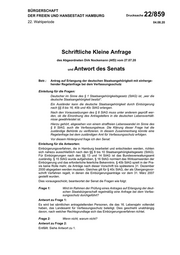 "title": "22/859 SKA: Antrag auf Erlangung der deutschen Staatsangehörigkeit mit einhergehender Regelanfrage bei dem Verfassungsschutz",