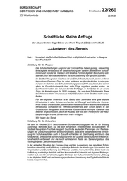 "content": "BÜRGERSCHAFT DER FREIEN UND HANSESTADT HAMBURG Drucksache 22/260 22. Wahlperiode 22.05.20 Schriftliche Kleine Anfrage der Abgeordneten Birgit Stöver und André Trepoll (CDU) vom 14.05.20 und Antwort des Senats Betr.: Investiert die Schulbehörde wirklich in digitale Infrastruktur in Neugra ben-Fischbek? Einleitung für die Fragen: Die Schulschließungen aufgrund der Corona-Krise haben gezeigt, wie wichtig eine digitale Infrastruktur für die Beschulung der daheim gebliebenen Schüle rinnen und Schüler ist. Vielfach sind kreative Formen digitaler Beschulung ent standen, von der Videokonferenz bis zum Streaming von ganzen Stunden. Im Stadtteil Neugraben-Fischbek ist die Schulinfrastruktur seit Jahren an ihren kapazitiven Grenzen. Dies ist unter anderem an den deutlichen Ausbaupla nungen im Rahmen des Schulentwicklungsplanes 2019 abzulesen, bei denen allein im Grundschulbereich über zehn Züge zugebaut werden sollen. Im Durchschnitt haben die Schulen bereits fünf Züge, in der Spitze bis zu sechs Züge als Anmeldungen für 2020 vorliegen. Die von dem Schulsenator Rabe beschriebene kleine Grundschule mit 240 Schülern ist im Stadtteil nicht vorzu finden. Für den digitalen Unterricht ist es Basis, dass zumindest eine gute digitale Infrastruktur in allen Schulen vorhanden ist. Dies gilt auch über die Corona- Krise hinaus und erfordert, dass in allen Klassenzimmern ausreichend digitale Infrastruktur vorhanden ist. Oftmals scheitert es aber schon daran. In der Grundschule Neugraben sind mehrere Klassenräume nicht per Kabel an das Internet angeschlossen, doch ein Ausbau soll vor dem Hintergrund der Neu bauplanungen in zwei Jahren nicht mehr erfolgen. Wir fragen den Senat: Einleitung für die Antworten: Mit dem im Oktober 2019 beschlossenen Schulentwicklungsplan hat die für Bildung zuständige Behörde auch auf die sich dynamisch entwickelnden Schülerzahlen im Stadtteil Neugraben-Fischbek reagiert. Durch die laufenden Planungen und Realisie rungen der Zubaumaßnahmen wird sichergestellt, dass eine bedarfsdeckende Versor gung mit Schulkapazitäten auch in Zukunft vorhanden ist. Gleichzeitig wird durch das fortlaufende, umfassende Sanierungsprogramm die Qualität der schulischen Infrastruk tur erheblich verbessert und die noch verbliebenen Reste des Sanierungsstaus des vorvergangenen Jahrzehnts behoben. In der aktuellen Situation der Corona-Krise und der Aussetzung des regulären Schul betriebs unterstützt die für Bildung zuständige Behörde die Hamburger Schulen bei der Organisation und Durchführung des Präsenz- und des Fernunterrichts. Dabei baut die für Bildung zuständige Behörde auf den Konzepten für Unterricht mit digitalen Bildungs medien auf, der mit der Umsetzung der Strategie der Kultusministerkonferenz „Bildung in der digitalen Welt\" und der hamburgspezifischen Umsetzung des DigitalPakts Schule bereits begonnen hat.",