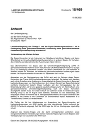 "content": "LANDTAG NORDRHEIN-WESTFALEN Drucksache 18/469 18. Wahlperiode 10.08.2022 Antwort der Landesregierung auf die Kleine Anfrage 142 des Abgeordneten Dr. Werner Pfeil FDP Drucksache 18/211 Laufzeitverlängerung von Tihange 1 und der Espoo-Umsetzungsausschuss – ist in Ermangelung einer grenzüberschreitenden Auswirkung keine grenzüberschreitende Umweltverträglichkeitsprüfung erforderlich? Vorbemerkung der Kleinen Anfrage Die Espoo-Konvention ist ein Instrument zur Beteiligung betroffener Staaten und deren Öffentlichkeit an Umweltverträglichkeitsprüfungsverfahren in anderen Staaten für Vorhaben, die erhebliche grenzüberschreitenden Auswirkungen haben können. Das Übereinkommen von Espoo über die Umweltverträglichkeitsprüfung (UVP) im grenzüberschreitenden Rahmen ist ein Instrument der UN-Wirtschaftskommission für Europa (ECE) zur Beteiligung betroffener Staaten und deren Öffentlichkeit an UVP-Verfahren in anderen Staaten für Vorhaben, die erhebliche grenzüberschreitende Auswirkungen haben können. Die Espoo-Konvention ist seit dem 10. September 1997 in Kraft. Abgesehen von der Rechtsprechung des EuGH wird auch im Rahmen dieser Espoo- Konvention das Thema AKW-Laufzeitverlängerungen behandelt. Sie befasst sich daneben auch mit der Erstellung einer Anleitung zur Anwendbarkeit der Espoo-Konvention in Bezug auf Laufzeitverlängerungen von Atomkraftwerken, da in diesem Bereich laut Espoo-Sekretariat rechtliche Unsicherheit besteht. Dieser Leitfaden soll den Vertragsstaaten bei der Entscheidung helfen, ob für eine geplante Laufzeitverlängerung für ein Atomkraftwerk eine grenzüberschreitende Umweltverträglichkeitsprüfung nach der Espoo Konvention durchgeführt werden muss. Ein erster Entwurf von Leitlinien wurde im Vorfeld der Espoo Working Group 9, die im August 2020 stattfand, erarbeitet. Es war beabsichtigt, den endgültigen Entwurf im Rahmen der 8. Vertragsstaatenkonferenz der Espoo Konvention (8th Meeting of the Parties to the Convention on Environmental Impact Assessment in a Transboundary Context) zu verabschieden. Die Treffen der Ad hoc Arbeitsgruppe zur Anwendung der Espoo-Konvention auf Laufzeitverlängerungen von AKW wurden wie viele internationale Treffen aufgrund der COVID-19-Pandemie abgesagt. Seit Mai 2020 tagte die Ad hoc Arbeitsgruppe regelmäßig virtuell. Aufgrund des Ukraine-Krieges und der damit einhergehenden politischen sowie energiewirtschaftlichen Veränderungen denken nationale Regierungen wie die Belgiens über Verlängerungen von Laufzeiten alter AKW nach. Datum des Originals: 09.08.2022/Ausgegeben: 16.08.2022",
