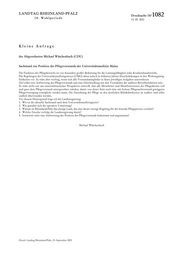 "content": "LANDTAG RHEINLAND-PFALZ 18. Wahlperiode Drucksache 18/ 1082 15. 09. 2021 Kleine Anfrage des Abgeordneten Michael Wäschenbach (CDU) Sachstand zur Position des Pflegevorstands der Universitätsmedizin Mainz Die Funktion der Pflegebereiche ist von besonders großer Bedeutung für die Leistungsfähigkeit jedes Krankenhausbetriebs. Die Regelungen des Universitätsmedizingesetzes (UMG) sahen jedoch in früheren Jahren Einschränkungen in den Wirkungsmög- lichkeiten vor. Es wäre aber wichtig, wenn sich alle Vorstandsmitglieder in ihren jeweiligen Aufgaben unterstützen. Ziel sollte eine Aufwertung des Pflegevorstands und eine Gleichstellung mit den Vorständen der anderen Betriebseinheiten sein. Es wäre nicht nur aus unternehmerischer Perspektive sinnvoll, dass alle Mitarbeiter und Mitarbeiterinnen des Pflegediensts voll und ganz dem Pflegevorstand untergeordnet würden, damit von dieser Seite auch eine mit hohem Pflegesachverstand getriggerte Pflegeversorgung ermöglicht werden kann. Die Zuordnung der Pflege zu den ärztlichen Klinikdirektoren ist tradiert und sollte endlich überwunden werden. Vor diesem Hintergrund frage ich die Landesregierung: 1. Wie ist der aktuelle Sachstand nach dem Universitätsmedizingesetz? 2. Wie gestaltet sich die operative Umsetzung? 3. Warum ist Rheinland-Pfalz das einzige Land, das eine derart strenge Regelung für die leitende Pflegeperson vorsieht? 4. Welche Zwecke verfolgt die Landesregierung damit? 5. Inwieweit wäre eine Aufwertung der Position des Pflegevorstands bedeutsam und angemessen? Michael Wäschenbach Druck: Landtag Rheinland-Pfalz, 15. September 2021",