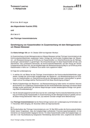 "content": "THÜRINGERLandtag Thüringer LANDTAG - 4. Wahlperiode Drucksache 4/ 411 4. Wahlperiode 26.11.2004 Kleine Anfrage des Abgeordneten Kuschel (PDS) und Antwort des Thüringer Innenministeriums Genehmigung von Kassenkrediten im Zusammenhang mit dem Beitragsmoratori- um Wasser/Abwasser Die Kleine Anfrage 136 vom 18. Oktober 2004 hat folgenden Wortlaut: Im Zusammenhang mit dem Beitragsmoratorium Wasser/Abwasser soll das Thüringer Innenministerium die Kommunalaufsichtsbehörden angewiesen haben, Anträge der kommunalen Aufgabenträger der Wasser- ver- und Abwasserentsorgung auf Erhöhung von Kassenkrediten zur Zwischenfinanzierung der Beitrags- stundungen unbürokratisch zu genehmigen. Die Zinsaufwendungen für diese Kassenkredite will das Land übernehmen. Das Landratsamt Sömmerda, als Kommunalaufsichtsbehörde, soll dem Antrag der Verwal- tungsgemeinschaft Gera-Aue, die als Aufgabenträger der Abwasserentsorgung tätig ist, auf Erhöhung eines Kassenkredits in Höhe von 1,5 Millionen Euro bisher nicht zugestimmt haben. Ich frage die Landesregierung: 1. In welcher Art und Weise hat das Thüringer Innenministerium die Kommunalaufsichtsbehörden ange- wiesen, Anträge der kommunalen Aufgabenträger der Wasserver- und Abwasserentsorgung auf Erhö- hung von Kassenkrediten zur Zwischenfinanzierung der Beitragsstundungen unbürokratisch zu geneh- migen und auf Grundlage welcher Rechtsvorschrift soll diese Genehmigung erfolgen? 2. Welche Aufgabenträger der Wasserver- und Abwasserentsorgung haben bisher mit welchem Volumen die Aufnahme von zusätzlichen Kassenkrediten bei den Aufsichtsbehörden beantragt und welche dieser Anträge wurden genehmigt? Mit welchen Begründungen wurden diesbezügliche Anträge nicht geneh- migt (bitte Einzelaufstellung)? 3. Hat die Verwaltungsgemeinschaft Gera-Aue bei der zuständigen Kommunalaufsichtsbehörde einen An- trag auf Erhöhung des Kassenkredits im Zusammenhang mit dem Beitragsmoratorium gestellt und wur- de dieser Antrag befürwortet? Wenn nein, aus welchen Gründen erfolgte keine Befürwortung? Das Thüringer Innenministerium hat die Kleine Anfrage namens der Landesregierung mit Schreiben vom 17. November 2004 (Eingang: 26. November 2004) wie folgt beantwortet: Zu 1.: Mit Rundschreiben des Thüringer Innenministeriums vom 18. Mai 2004 wurden die Kommunalaufsichtsbe- hörden darauf hingewiesen, dass die Aufgabenträger auftretenden Finanzierungsschwierigkeiten mit der Aufnahme von Kassenkrediten begegnen können. Für diese Kassenkredite sollten die Aufgabenträger, so- weit der in der Haushaltssatzung festgesetzte Höchstbetrag überschritten wird, umgehend die Genehmi- Druck: Thüringer Landtag, 9. Dezember 2004 1",