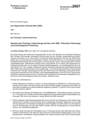 "title": "Situation des Thüringer Justizvollzugs seit dem Jahr 2006 - Prävention, Nachsorge und kriminologische Forschung",