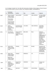 "content": "Last update: 08-03-2022 List of meetings \"Leonardo S.p.A.\" has held with Commissioners, Members of their Cabinet or Director-Generals since 01/12/2014 under its current ID number in the Transparency Register: \"02550382403-01\". Commission Nr representative Portfolio Date Location Subject(s) CNECT 1 Fabrice Comptour, Internal Market 14/12/2021 video conference EU Data strategy, Cabinet member European Cloud of Thierry Breton Alliance. Thierry Breton, Commissioner Valere Moutarlier, Cabinet member of Thierry Breton SG.D3 2 Andrea An Economy that 15/11/2021 video-conference Sustainable Beltramello, Works for People finance and Cabinet member taxonomy of Valdis Dombrovskis DEFIS 3 Timo Pesonen, Director-General 08/11/2021 Rome Meeting to Director-General of Defence exchange views Industry and Space on the (DEFIS) implementation of EDF/EDIDP, the development of the space downstream sector, the zero emission aviation initiative and secure connectivity. SG.G2 4 Valeria Miceli, President 14/10/2021 Brussels Helicopters and Cabinet member defence activities of Ursula von der in the context of Leyen sustainability and potential links with taxonomy. MOVE 5 Walter Goetz, Transport 09/09/2021 VTC EU Taxonomy Cabinet member of Adina Vălean Rachel Smit, Cabinet member of Adina Vălean 6 Michele Europe Fit for 23/03/2021 Online Transport and COMP Piergiovanni, Digital Age tourism Cabinet member of Margrethe Vestager AGRI 7 Maciej Agriculture 25/02/2021 Virtual meeting Discussion: A Golubiewski, proposal to boost",