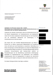 "content": "> SACHSEN-ANHALT Ministerium für Inneresund Sport Ministerium für Inneresund Sport des Landes Sachsen-Anhalt Postfach3563 - 39010 Magdeburg Landesverwaltungsamt Ernst-Kamieth-Str.2 06112 Halle (Saale) Aufnahmevon Personennach8 Abs. AufnG; 1 1 Ss November2021 Einrichtungeines Austauschformats mitdem Aufnahmekommunen zur Informationüberdie aktuelleZugangssituation Angesichtsder aktuellenEntwicklungensollen die Aufnahmekommunen über die aktuelle Zugangssituationvon Asylbewerberinnenund Asylbewerbern sowie die sich daraus ergebendenHerausforderungen für die Erstaufnahme und die erforderlichen Maßnahmen der Unterbringung in den Aufnahmekommunen werden. informiert - Seit August 2021 sind verstärkteMigrationsbewegungen aus Belarus in Richtung der an Belarus angrenzendenMitgliedstaatender Europäischen Ihre Nachricht: Union und damitauch nach Deutschlandzu verzeichnen.Gleichzeitigist es bisher nichtgelungen,die Sekundärmigration anderenEU-Mitgliedstaatenvom aus nach Deutschlandeffektiveinzudämmen.Die aktuelleMigrationslage sowiedie anhaltende Corona-Pandemie stellt Sachsen-Anhalt weiterhin vor MINI Herausforderungenbei der BereitstellungausreichenderUnterbringungs- 41257/2021 kapazitätenfür Asylbewerberinnenund Asylbewerber. Eine verlässliche Langzeitprognoseüber die Zugangszahlen ist aufgrund der dynamischen Entwicklungnichtmöglichund liegtauch seitensdes Bundes bishernichtvor. Vor diesem Hintergrund bitteich wie folgtzu verfahren: HalberstädterStr. 2/ am „Platz des 17. Juni“ 39112 Magdeburg Telefon (0391) 567-01 Telefax(0391) 567-5290 poststelle@mi.sachsen-anhalt.de www.mi.sachsen-anhalt.de LandeshauptkasseSachsen-Anhalt Sachsen-Anhalt DeutscheBundesbank BIC MARKDEF1810 #moderndenken IBAN DE21 8100 0000 0081 0015 00",