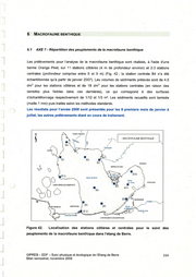 "content": "En plus des 10 stations de la bordure cötiere et des 3 stations centrales, une s£rie de 18\npoints de pr&l&övements compl&mentaires a &t& r&alis& le long de 2 transects ä l’est et &\nl’ouest de l’&tang et dans le sud, autour du chenal de navigation qui correspond ä la zone\nd’extension du coin sale et & la transition entre SVMC, LEE et zone azoique (Figure 49). En\noutre, une observation visuelle simple, le long de 17 radiales, positionnees au niveau des\nstations cötieres et centrales ont permis de connaitre la profondeur jusqu’ä laquelle la faune\nbenthique est presente. Les resultats obtenus ont permis de dresser la cartographie des\n\nassemblages prösents (Figure 50).\n\nB 0 3 6\na Towtouben\n‚ er\n—. ) Cansı EDF\nPoints habiluels\nDirangcie\n7 Points compi&mentaires\n\n——— Transects pour observalion simple\n\n \n\n \n\n \n \n\nxy\n\nI\n5 Etany de Vaine\n4 ®\n\n&\n\n\\\n\\\nr v PER\no *\no Cadiöre\nco ® ®\nu 7 — N I\n\n \n\n \n\nFigure 49. Localisation des points de prölävements et transects d’observation visuelle\neffectuäös pour:la cartographie des peuplements de la macrofaune benthique en\nde&cembre 2006.\n\nGIPREB - EDF — Suivi physique et &cologique de l’Etang de Berre 114\nBilan semestriel, novembre 2008",