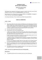 "content": "Ref. Ares(2017)5533208 - 13/11/2017\n\n\n EUROPEAN UNION\n DELEGATION AGREEMENT\n\n T05-EUTF-NOA-REG-3 T05.216\n (the \"Agreement\")\n\n\nThe European Union, represented by the European Commission, on behalf of and for the account of the EU\nEmergency Trust Fund for Africa (the ‘Contracting Authority') of the one part, and\n\nThe International Centre for Migration Policy Development (ICMPD) with its at Gonzagagasse 1,\n5th floor, 1010 Vienna, Austria, hereinafter the 'Organisation'\n\nof the other part, (individually a \"Party\" and collectively the ‘Parties’) have agreed as follows:\n\n\n\n SPECIAL CONDITIONS\nArticle 1 - Purpose\n\n\n1.1 This Agreement defines the activities entrusted to the Organisation for the implementation of the Action\n MENOA - Support for the completion and implementation of the Monitoring and Evaluation System for\n the North of Africa Window of the EU Emergency Trust Fund for Africa as described in Annex I (the\n “Action”). This Agreement lays down the rules for implementation, for the payment of the EU\n contribution, and defines the relations between the Organisation and the Contracting Authority.\n1.2 The Action is fully financed by the EU contribution.\n1.3 In the performance of the activities, the Organisation shall:\n a) apply its own accounting, internal control and audit systems which have been positively assessed in\n the ex-ante pillars assessment. In case the pillar assessment raised some reservations the Organisation\n shall comply with the ad hoc measures stated in Article 7.\n b) apply its own procurement procedures, as assessed in the ex-ante pillars assessment, and its own rules\n for the award of Grants, as assessed in the ex-ante pillars assessment.\n c) perform the activities to be implemented under the Agreement in accordance with the principles of\n Sound Financial Management, transparency and non-discrimination, applying its positively assessed\n Regulations and Rules.\n d) be free to use any Regulations and Rules which have not been subject to the ex-ante pillar assessment\n to the extent that these Regulations and Rules are not in conflict with the provisions of this Agreement.\n1.4 The Action is an EU External Action. The Action is financed under the European Union Emergency Trust\n Fund for stability and addressing root causes of irregular migration and displaced persons in Africa (i.e.\n “Trust Fund”).\n1.5 The Organisation shall provide the management declaration with every progress and final report in\n accordance with Articles 3.10 of the General Conditions.\n\n\nArticle 2 - Entry into Force, Implementation Period and Contracting Deadline\n\nEntry Into Force\n\n2.1 The Agreement shall enter into force on the date when the last of the two Parties signs.",