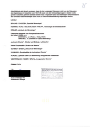 "content": "Abschließend wird darauf verwiesen, dass die hier vorgelegte Diskussion nicht von der Diskussion\ndes Ergebnisses im Gutachten vom 16.01.98 sowie von den Schlussfolgerungen in beiden vorlie-\ngenden Gutachten getrennt bewertet werden kann. Insgesamt kann nach bisherigem Erkenntnisstand\naus forensisch-sachverständiger Sicht nicht zur Sachverhaltsaufklärung beigetragen werden.\nLiteratur:\nBRAUNS / CHUDOBA „Spezielle Mineralogie\"\nHENNING / KÜHL / OELSCHLÄGER / PHILIPP „Technologie der Bindebaustoffe*\nRÖSLER „Lehrbuch der Mineralogie“\nDatenbank-Bibliothek zum Röntgendiffraktometer\ndort zitiert: KUZEL u. a.\nBUSHUEV u. a. in Russ. J. Inorg. Chem.\nWINCHELL in „Elements of Optical Mineralogy“\n„Lehrwerk Chemie“ - Struktur und Bindung - Lehrbuch 2\nKleine Enzyklopädie „Struktur der Materie“\nSCHMIDT / BAIER „Lehrbuch der Mineralogie”\nULLMANN's „Encyklopädie der technischen Chemie”\nKORDES „Optische Daten zur Bestimmung anorganischer Substanzen“\n\nWESTERMANN / NÄSER / GRUHL „Anorganische Chemie“\n\nAnlagen: keine\nan [BEHÖRDENGUTACHTEN|\n\n| Vor etwa rLa 9 Die\n\n \n\n \n\nMög cu jesung\n\nIaem.& ten!!!\n\nSachverständiger für\nforensische Biologie",