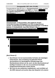 "content": "AA/BMU/BMWi BK’in in LTU mit PM von EST, LVA, LTU 14.9.18 27.08.2018\n\n\n Energiepolitik EST, LVA, LTU (B3)\nEnergiepolitische Ziele B3 sind v.a. Energiesicherheit, insbes. mit Blick\nauf Verringerung Abhängigkeit von RUS (v.a. Erdgas, ),\nund stärkere Integration in EU-Markt (Baltische Synchronisierung).\nNord Stream 2\n\n\n\n\n .\nGesprächsziele: 1) Herausstellen, dass baltische Sorgen\nhinsichtlich Energie-Abhängigkeit von RUS ernstgenommen\nwerden. 2) Unterstützung für Integrationsbestrebungen in EU-Markt\nbetonen. 3) Verdeutlichen, dass Nord Stream 2 der\nEnergiesicherheit in Europa nicht entgegensteht.\n\n\n\n\n[Nord Stream 2]\n Nord Stream 2 ist ein kommerzielles Vorhaben der beteiligten\n Unternehmen, das im Einklang mit geltendem Recht\n durchzuführen ist. Nachträgliche Veränderungen des\n Rechtsrahmens lehnen wir ab, auch, da dies abschreckend auf\n künftige Investoren in die von uns zunehmend benötigte\n Erdgasimportinfrastruktur wirken könnte.\n Wir sind uns der politischen Implikationen, auch mit Blick auf\n die UKR, bewusst und suchen dazu das Gespräch mit unseren",