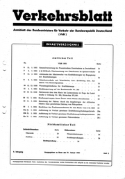 "content": "Verkehrsblalt\nAmtsblatt des Bundesministers für Verkehr der Bundesrepublik Deutschland\n (VkBl)\n\n I»\n\n\n\n\n l INHALTSVERZEICHNIS II\n I»\n\n\n\n\n Amtlicher Teil\n\n Nr. VkBl 1951 Seite\n\n 6 13. 1. 1951 Generalvertretung der Französischen Eisenbahnen in Deutschland 14\n 7 6. 1. 1951 § 26 BOKraft; Überbesetzung von Omnibussen im Spitzenverkehr 14\n 8 12. 4' 1951 Abblenden der Scheinwerfer von Kraftfahrzeugen bei Begegnung\n mit, Eisenbahnzügen 14\n 9\n 6. 1. 1951 Güterfernverkehr mit West-Berlinr hier: Errichtung bzw. An\n fahren von Kontrollpunkten 14\n 10 12. 12. 1950 Warenbegleitscheine für Kraftfahrzeuge 15\n 11\n 4. 1. 1951 Straßensperrung auf der Bundesstraße Nr. 203 . 15\n 12 30. 12. 1950 Fährbetrieb, über den Rhein bei Leimersheim im Zuge der Land\n Straße I. Ordnung Nr. 385, Strom-km 372,100 15\n 13 12. 1. 1951 Straßensperrungen, deren Dauer einen Monat überschreitet 16\n 14 11.\n 1. 1951 Benutzung der Fähren durch die Angehörigen der Alliierten\n Mächte ohne persönliche Zahlung von Fährgeldern 18\n 15\n 3. 1. 1951 Beschlüsse des Frachtenausschusses für den Rhein vom 5. 12.1950 18\n ISa 31. 1. 1951 Aufbietung in Verlust geratener Kraftfahrzeug(Anhänger)briefe 28a\n 15b 31.\n 1. 1951 - Aufbietung in Verlust geratener Kraftfahrzeug(Anhänger)scheine 28c\n 15c 31.\n 1. 1951 Aufbietung in Verlust geratener Führerscheine . . . 281\n\n\n\n Nichtamtlicher Teil\n\n Zeitsdiriftensdiau: Seite Bttdiersdiau; Seite\n Übersicht 19 Neuerscheinungen '. 24\n Auslese . 22\n Buchbesprechungen . 24\n Rechtsprechung 26\n\n\n\n\n5. Jahrgang Ausgegeben zu Bonn am 31. Januar 1951 Heft 2\n\n\n\n\nVerlagspostamt Dortmund. Beim Ausbleiben des Verkehrsblattes wollen Postbezieher sich lediglich an die lieternden\n Postämter wenden",