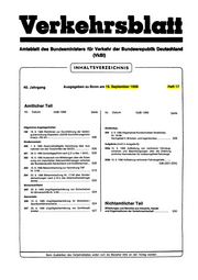 "content": "e rs a\nAmtsblatt de8 Bundesministers fOr Verkehr der Bundeerepubllk Deut8chlancl\n (VkBI)\n\n ( INHALTSVERZEICHNIS]\n\n\n\n 40. Jahrgang Ausgegeben zu Bonn am 15. September 1986 Heft 17\n\n\n\n\n Amtlicher Teil\n Nr. Datum VkBI1986 Seite Nr. Datum VkBI1986 Seite\n\n\n\n\n Allgemeine Angelegenheiten Straßenbau\n 199 19. 8. 1986 Richtlinien zur Durchführung der Gefahr- 208 5. 9. 1986 Allgemeines Rundschreiben Straßenbau\n gutverordnung Eisenbahn (GGVE-Durchführungsricht- Nr.18/86\n linien) - RE 001 - 498 Sachgebiet 5: Brücken- und Ingenieurbau 528\n Straßenverkehr\n AUfgebote (nicht in Ausgabe B)\n 200 1. 9. 1986 Zweiunddreißigste Verordnung über Aus-\n nahmen von den Vorschriften der StVZO 506 208a 15. 9. 1986 AUfbietung von verlorenen Fahrzeug-\n scheinen und Bescheinigungen über die Zuteilung\n 201 28. 8. 1986 Gurtanlegepflicht nach § 21 a Abs. 1 StVO... 508 amtlicher Kennzeichen für zulassungsfreie Fahrzeuge\n 202 18. 8. 1986 Austausch von Mitteilungen über die Zulas-\n sung von importierten Gebrauchtfahrzeugen zwischen 208b 15. 9. 1986 AUfbietung verlorener Fahrzeugbriefe .\n der Bundesrepublik Deutschland und Großbritannien... 508 536 (001-224)\n 203 15. 8. 1986 Bekanntmachung zur Verordnung TSF\n Nr. 5/86 519\n 204 20. 8. 1986 Bekanntmachung Nr. 17/86 über Sonder-\n abmachungen nach § 22 ades Güterkraftverkehrsge-\n satzes 520\n BInnenschiffahrt\n 205 22. 8. 1986 Ungültigkeitserklärung von Eichscheinen\n für Binnenschiffe Nr. 3/86................................................ 524\n Seeverkehr\n 206 13. 8. 1986 Ungültigkeitserklärung für Motorboot-/\n Sportbootführerscheine 524 Nichtamtlicher Teil\n 207 26. 8. 1986 Ungültigkeitserklärung von Schiffsmeß- Mitteilungen und Berichte aus Industrie, Handel\n briefen 527 und Organisationen der Verkehrswirtschaft ...................... 530\n\n\n\n\n Beim Ausbleiben des Verkehrsblattes wollen sich die Bezieher bitte an den Verlag wenden.\n\n\n\n\n Beim Ausbleiben des Verkehrsblattes wollen sich die Bezieher bitte an den Verlag wenden.",