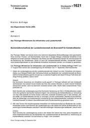 "content": "Thüringer Landtag Drucksache 7/ 1621 7. Wahlperiode 14.09.2020 Kleine Anfrage des Abgeordneten Henke (AfD) und Antwort des Thüringer Ministeriums für Infrastruktur und Landwirtschaft Borkenkäferschadholz der Landesforstanstalt als Brennstoff für Kohlekraftwerke Die Thüringer Wälder sind derzeit durch eine historisch beispiellose Borkenkäferplage stark geschwächt. Hinzu kommen Trocken- und Sturmschäden. Durch das in riesigen Mengen anfallende Schadholz ist der Holzpreis auf einem extremen Tiefststand. Die Erlöse aus dem Holzverkauf decken oft nicht die Kosten für die Beräumung des Schadholzes. Davon ist auch die Landesforstanstalt betroffen. Demgemäß müssen neue Absatzmöglichkeiten für das anfallende Schadholz erschlossen werden, um Umsätze zu generieren. Das Thüringer Ministerium für Infrastruktur und Landwirtschaft hat die Kleine Anfrage 7/1077 vom 17. August 2020 namens der Landesregierung mit Schreiben vom 11. September 2020 beantwortet: 1. Haben die Landesregierung und die Landesforstanstalt den Verkauf von Holz, Schadholz und Holzpro- dukten (zum Beispiel Pellets oder Holzhackschnitzel) aus Beständen der Landesforstanstalt als Brenn- stoff für Kohlekraftwerke geprüft und wenn ja, zu welchem Ergebnis kam diese Prüfung? Falls keine der- artige Prüfung stattfand, warum nicht? Antwort: Die thermische Verwertung von Schadholz wurde geprüft. In Thüringen befindet sich kein Kohlekraft- werksstandort. Aus diesem Grund müsste das Holz über weitere Strecken zu einem solchen Kraftwerk transportiert werden, wenn es thermisch verwertet werden sollte. Hierfür fielen entsprechende Trans- portkosten an. Nach Kenntnis der Landesregierung ist die thermische Verwertung von Holz in Kohlekraftwerken zudem nicht ohne größeren technischen Aufwand möglich. Die Umrüstung der Kohlekraftwerke zur Verwertung von Holz wäre deshalb mit hohen Kosten verbunden. Inwieweit Schadholz auch in den nächsten Jah- ren anfällt, um Kohlekraftwerke mit Holz zu versorgen, ist nicht vorhersehbar. Deshalb ist anzunehmen, dass die aufwendige und kostenintensive Umrüstung für die Kraftwerksbetreiber unattraktiv ist und die Landesforstanstalt mit diesem Geschäftsmodell keine Einnahmeerhöhung generieren kann. 2. Wie viele Tonnen Holz beziehungsweise Holzpellets und Holzhackschnitzel aus Beständen der Landes- forstanstalt wurden nach Kenntnis der Landesregierung in den letzten fünf Jahren als Brennstoff zur Ver- stromung an Kohlekraftwerke veräußert? Falls keine derartigen Veräußerungen stattfanden, warum nicht? Antwort: Nach Kenntnis der Landesregierung wurde in den letzten fünf Jahren kein Holz, keine Holzpellets und keine Holzhackschnitzel aus den Beständen der Landesforstanstalt als Brennstoff zur Verstromung an Kohlekraftwerke veräußert. Auf die Antwort zu Frage 1 wird verwiesen. Druck: Thüringer Landtag, 30. September 2020",