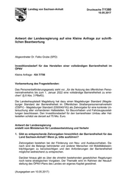 "content": "Landtag von Sachsen-Anhalt Drucksache 7/1380 10.05.2017 Antwort der Landesregierung auf eine Kleine Anfrage zur schrift- lichen Beantwortung Abgeordneter Dr. Falko Grube (SPD) Investitionsbedarf für das Herstellen einer vollständigen Barrierefreiheit im ÖPNV Kleine Anfrage - KA 7/756 Vorbemerkung des Fragestellenden: Das Personenbeförderungsgesetz sieht vor, „für die Nutzung des öffentlichen Perso- nennahverkehrs bis zum 1. Januar 2022 eine vollständige Barrierefreiheit zu errei- chen“ (§ 8 Abs. 3 PBefG). Die Landeshauptstadt Magdeburg hat dazu einen Magdeburger Standard (Magde- burger Standard der Barrierefreiheit im Öffentlichen Straßenpersonennahverkehr (ÖSPV) - Magdeburger Standard (DS0040/16)) als Zielvorgabe für eine konkrete Un- tersuchung aller vorhandenen Haltestellen, für Bauvorhaben und Fahrzeugausstat- tungen beschlossen. Den Investitionsbedarf für den barrierefreien Umbau aller Hal- testellen schätzt sie derzeit auf 75 Mio. Euro. Antwort der Landesregierung erstellt vom Ministerium für Landesentwicklung und Verkehr 1. Gibt es entsprechende Zielvorgaben hinsichtlich der Barrierefreiheit für das Land Sachsen-Anhalt? Wenn ja, bitte ausführen? Zielvorgaben bestehen bei der Förderung von Neu- und Ausbauvorhaben. Da- nach sind die Belange behinderter und anderer Menschen mit Mobilitätsbeein- trächtigungen zu berücksichtigen und den Anforderungen der Barrierefreiheit möglichst weitreichend zu entsprechen. Darüber hinaus gibt es über die ohnehin bestehenden gesetzlichen Regelungen noch keine strategischen Vorgaben. Der Thematik wird im Rahmen der Neuauf- stellung des ÖPNV-Plans des Landes ein eigenes Kapitel gewidmet. (Ausgegeben am 10.05.2017)",