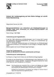 "content": "Landtag von Sachsen-Anhalt Drucksache 7/2989 08.06.2018 Antwort der Landesregierung auf eine Kleine Anfrage zur schrift- lichen Beantwortung Abgeordneter Hannes Loth (AfD) Managementmaßnahmen zum Artenschutz und Schallpegelmessungen im Windpark Gagel sowie Verwendung von Windpark-Sponsorengeldern und Schadensausgleich Kleine Anfrage - KA 7/1632 Vorbemerkung des Fragestellenden: In der Drs. 7/823 „Artenschutz an Windkraftanlagen“ (vom 12. Januar 2017) wurden die festgesetzten Managementmaßnahmen zur Tötung von Einzelindividuen ge- schützter Tierarten aufgeführt. In Drs. 7/1153 wurden „Messanordnungen zur Ermittlung der von Windkraftanlagen ausgehenden Emissionen und Immissionen“ für drei Anlagen im Windpark Gagel be- nannt. Daraus ergeben sich für den Windpark Gagel Nachfragen. Antwort der Landesregierung erstellt vom Ministerium für Umwelt, Landwirtschaft und Energie Vorbemerkung der Landesregierung: Zur Antwort zu Frage 9 sind 2 Karten als nicht öffentliche Anlage beigefügt. Es werden bei der Genehmigung von Windkraftanlagen keine Maßnahmen zur Tö- tung geschützter Tierarten getroffen. Vorgesehene Managementmaßnahmen zielen immer darauf ab, das Tötungsrisiko zu minimieren. Hinweis: Eine Einsichtnahme des vertraulichen Teils o. g. Antwort ist für Mitglieder des Landtages in der Landtagsverwaltung - Akteneinsichtnahmeraum - nach Terminabsprache möglich. Die Drucksache steht vollständig digital im Internet/Intranet zur Verfügung. Bei Bedarf kann Einsichtnahme in der Bibliothek des Landtages von Sachsen-Anhalt er- folgen oder die gedruckte Form abgefordert werden. (Ausgegeben am 11.06.2018)",