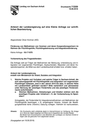 "content": "Landtag von Sachsen-Anhalt Drucksache 7/3359 18.09.2018 Antwort der Landesregierung auf eine Kleine Anfrage zur schrift- lichen Beantwortung Abgeordneter Oliver Kirchner (AfD) Förderung von Maßnahmen von Vereinen und deren Kooperationspartnern im Rahmen der Flüchtlingshilfe, Flüchtlingsbetreuung und Integrationsförderung Kleine Anfrage - KA 7/1870 Vorbemerkung des Fragestellenden: Die Anfrage zielt auf Träger der Maßnahmen der Betreuung, Unterstützung und In- tegration von sogenannten Flüchtlingen, Asylsuchenden, Migranten und deren Ko- operationspartner, die Mittel aus dem Landeshaushalt erhalten bzw. erhalten haben. Antwort der Landesregierung erstellt vom Ministerium für Arbeit, Soziales und Integration 1. Welche Projekte und Vorhaben und welche Träger in Sachsen-Anhalt, die sich satzungsgemäß mit Flüchtlingshilfe und Integration von sogenannten Flüchtlingen befassen, sind in den Jahren 2015 bis dato, in welcher Höhe mit Landesmitteln gefördert worden? Bitte namentlich und jahresweise unter Nennung der jeweiligen Förderhöhe und des jeweiligen Förderzeit- raums aufschlüsseln. a. Welchen Maßnahmen, Zielsetzungen und Inhalten widmen sich die jeweiligen Projekte oder Initiativen i. S. der Vorbemerkung im Spezi- ellen? Antragsteller, die Fördermittel für Integrationsmaßnahmen und Maßnahmen der Flüchtlingshilfe beantragen, z. B. eingetragene Vereine, müssen der Bewilli- gungsbehörde keine (Vereins-) Satzung vorlegen. Vielmehr ist nachzuweisen, Hinweis: Die Drucksache steht vollständig digital im Internet/Intranet zur Verfügung. Die Anlage ist in Word als Objekt beigefügt und öffnet durch Doppelklick den Acrobat Reader. Bei Bedarf kann Einsichtnahme in der Bibliothek des Landtages von Sachsen-Anhalt er- folgen oder die gedruckte Form abgefordert werden. (Ausgegeben am 18.09.2018)",