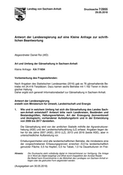 "content": "Landtag von Sachsen-Anhalt Drucksache 7/2955 29.05.2018 Antwort der Landesregierung auf eine Kleine Anfrage zur schrift- lichen Beantwortung Abgeordneter Daniel Roi (AfD) Art und Umfang der Gänsehaltung in Sachsen-Anhalt Kleine Anfrage - KA 7/1654 Vorbemerkung des Fragestellenden: Nach Angaben des Statistischen Landesamtes (2016) gab es 76 gänsehaltende Be- triebe mit 24.416 Tierplätzen. Dazu kamen sechs Betriebe mit 1.162 Tieren in ökolo- gischer Haltung. Daher ergibt sich generell Informationsbedarf zur Gänsehaltung in Sachsen-Anhalt. Antwort der Landesregierung erstellt vom Ministerium für Umwelt, Landwirtschaft und Energie 1. Wie und in welchem Umfang hat sich die Gänsehaltung des Landes Sach- sen-Anhalt entwickelt? Antwort bitte nach Landkreisen, Beständen und Bestandsgrößen, Haltungsverfahren, Art der Erzeugung (konventionell und ökologisch), vorhandener Aufstallungsform und in der Entwicklung von 2006 bis 2017 darstellen. Die Gänsehaltung wird von der amtlichen Statistik mithilfe der Agrarstrukturer- hebung (ASE) und der Landwirtschaftszählung (LZ) erfasst. Angaben liegen da- her für die Jahre 2007 (ASE), 2010 (LZ), 2013 und 2016 (beide ASE), aber in unterschiedlicher Aufbereitung vor. Erhebungseinheiten sind alle landwirtschaftlichen Betriebe, die mindestens eine der vorgeschriebenen Erfassungsgrenzen erreichen (5,0 ha landwirtschaftlich genutzter Fläche; 0,5 ha Hopfen; 0,5 ha Tabak; 1,0 ha Dauerkulturen im Frei- Hinweis: Die Drucksache steht vollständig digital im Internet/Intranet zur Verfügung. Die Anlage ist in Word als Objekt beigefügt und öffnet durch Doppelklick den Acrobat Reader. Bei Bedarf kann Einsichtnahme in der Bibliothek des Landtages von Sachsen-Anhalt er- folgen oder die gedruckte Form abgefordert werden. (Ausgegeben am 30.05.2018)",