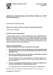 "content": "Landtag von Sachsen-Anhalt Drucksache 7/1369 09.05.2017 Antwort der Landesregierung auf eine Kleine Anfrage zur schrift- lichen Beantwortung Abgeordnete Sarah Sauermann (AfD) Erfassung von Ködern mit Gift und anderen schädlichen Bestandteilen Kleine Anfrage - KA 7/730 Vorbemerkung des Fragestellenden: In Sachsen-Anhalt wie auch in anderen Bundesländern gibt es regelmäßig Meldun- gen über schädliche Köder mit dem Ziel der Tierquälerei. Dabei werden z. B. Wurst- stückchen mit Rattengift, Nägeln oder anderen potentiell schädlichen Bestandteilen präpariert und danach am Wegesrand ausgelegt. Opfer dieser Köder sind vor allem Tiere wie Hunde und Katzen, wobei auch eine Gefährdung für den Menschen, insbe- sondere für Kleinkinder, nicht auszuschließen ist. Antwort der Landesregierung erstellt vom Ministerium für Umwelt, Landwirtschaft und Energie 1. Wie viele Köderfunde sind der Landesregierung seit 2010 bekannt? Bitte aufschlüsseln nach Jahr, Fundort, Art der Köder sowie Anzahl und Art der betroffenen Tiere. 2. Wie viele der betroffenen Tiere sind seit 2010 verendet? Bitte aufschlüs- seln nach Jahr sowie Anzahl und Art der Tiere. Die zu den Fragen 1 und 2 von den Landkreisen und kreisfreien Städten als un- tere Tierschutzbehörden erhobenen Daten sind der als Anlage beigefügten Ta- belle zu entnehmen. 3. Sind der Landesregierung Vorfälle bekannt, in denen auch Menschen di- rekt durch die Aufnahme von Ködern betroffen waren? Der Landesregierung sind in diesem Zusammenhang keine Vorfälle bekannt. Hinweis: Die Anlage ist als Objekt beigefügt und öffnet durch Doppelklick im Netz den Acrobat Reader. (Ausgegeben am 09.05.2017)",