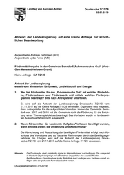 "content": "Landtag von Sachsen-Anhalt Drucksache 7/3779 02.01.2019 Antwort der Landesregierung auf eine Kleine Anfrage zur schrift- lichen Beantwortung Abgeordneter Andreas Gehlmann (AfD) Abgeordnete Lydia Funke (AfD) Fördermittelvergabe in der Gemeinde Benndorf/„Fuhrmannsches Gut“ (Verb- Gem Mansfeld-Helbraer Grund) Kleine Anfrage - KA 7/2149 Antwort der Landesregierung erstellt vom Ministerium für Umwelt, Landwirtschaft und Energie 1. Wer hat Fördermittel für das „Fuhrmannsche Gut“ mit welcher Förderhö- he, Förderzeitraum und Förderzweck und mittels welchen Förderpro- gramms beantragt? Bitte nach Antragsteller unterteilen. Es wird auf die Antwort der Landesregierung Drucksache 7/2110 vom 21.11.2017 auf die Kleine Anfrage 7/1128 verwiesen. Ergänzend wird mitgeteilt, dass Antragsteller für die aufgezählten Vorhaben immer die Gemeinde Benn- dorf war. 2017 und 2018 hat die Gemeinde noch die Förderung für die Errich- tung eines Themenspielplatzes beantragt. Das Vorhaben wurde im landeswei- ten Auswahlverfahren nicht ausgewählt. 2. Wenn Fördermittel für bestimmte Aufgaben/Vorhaben bewilligt wurden, wann erfolgte jeweils die Umsetzung und Abrechnung? Die Abrechnung und Auszahlung der bewilligten Fördermittel erfolgt nach Ab- schluss des Vorhabens und auf bezahlte Rechnungen durch die Bewilligungs- behörde. Im Übrigen wird auf die Antwort der Landesregierung Druck- sache 7/2110 vom 21.11.2017 auf die Kleine Anfrage 7/1128 verwiesen. Hinweis: Die Drucksache steht vollständig digital im Internet/Intranet zur Verfügung. Die Anlage ist in Word als Objekt beigefügt und öffnet durch Doppelklick den Acrobat Reader. Bei Bedarf kann Einsichtnahme in der Bibliothek des Landtages von Sachsen-Anhalt er- folgen oder die gedruckte Form abgefordert werden. (Ausgegeben am 03.01.2019)",