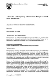 "content": "Landtag von Sachsen-Anhalt Drucksache 6/4811 15.02.2016 Antwort der Landesregierung auf eine Kleine Anfrage zur schrift- lichen Beantwortung Abgeordneter Olaf Meister (BÜNDNIS 90/DIE GRÜNEN) Flurnamen Kleine Anfrage - KA 6/9050 Vorbemerkung des Fragestellenden: Flurnamen sind ein wichtiger Bestandteil der regionalen Kultur und jeweiligen Orts- geschichte. Ihre Bedeutung geht insofern über ihre rein praktische Funktion der Be- nennung nicht bewohnter Örtlichkeiten und Landschaftsbestandteile hinaus. Antwort der Landesregierung erstellt vom Ministerium für Landesentwicklung und Verkehr Vorbemerkung: Flurnamen sind historisch überlieferte ortsübliche Bezeichnungen, die nicht durch ei- nen Akt der Namensgebung entstanden sind, sondern in einem längeren, generati- onsübergreifenden Prozess aus Appellativen erwuchsen. Sie sind kein Ordnungs- merkmal im Grundbuch und im Liegenschaftskataster und sind auch nicht Inhalt die- ser Register. Dort werden die Fluren lediglich mit einer Nummer bezeichnet. Es ist nicht bekannt, ob an anderer Stelle Flurnamen offiziell geführt werden. Sie gehören auch nicht zum Inhalt der Geotopographischen Landesaufnahme. Neben der Registerbeschreibung von Flurstücken (Gemeinde/Gemarkung/Flur- nummer/Flurstücksnummer) werden im Liegenschaftskataster und im Grundbuch zu- sätzlich Lagebezeichnungen geführt. Innerhalb bebauter Gebiete sind dies Straßen- name und Hausnummer, bei Gewässern der Gewässername sowie im unbewohnten Außenbereich der „Gewannname“. Dieser Name ist ebenfalls eine überlieferte, orts- übliche historische Benennung, die meist bei der ursprünglichen Anlegung des Ka- tasters vor mehr als 200 Jahren Eingang in die Register gefunden hat, in der Regel unverändert verwendet wird und zum Teil nur nachrichtlich in die Topographischen Landeskarten übernommen wurde. Neue Gewannnamen können in sehr seltenen (Ausgegeben am 15.02.2016)",