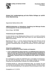 "content": "Landtag von Sachsen-Anhalt Drucksache 7/3717 12.12.2018 Antwort der Landesregierung auf eine Kleine Anfrage zur schrift- lichen Beantwortung Abgeordneter Matthias Büttner (AfD) AMEOS-Klinikbetreiber im Salzlandkreis, Empfehlung des Marburger Bundes und Konsequenzen für das Land Sachsen-Anhalt Kleine Anfrage - KA 7/2109 Vorbemerkung des Fragestellenden: In einem Interview mit der Mitteldeutschen Zeitung vom 22. Juni 2018 zum Bereich Salzlandkreis rät der Marburger Bund Ärzten davon ab, einen Arbeitsvertrag mit AMEOS abzuschließen. Begründet wird dies u. a. mit den extremen Einsparungen beim Personal und bei Honorarkräften. Zudem seien viele Mitarbeiter aller Professionen aufgrund der schlechten Arbeitsbedingungen und wegen des schlechten Rufs der Häuser gegan- gen. Antwort der Landesregierung erstellt vom Ministerium für Arbeit, Soziales und Integration 1. Ist der Landesregierung dieses Interview in der Mitteldeutschen Zeitung be- kannt und wenn ja, wie bewertet die Landesregierung diese Empfehlung im Hinblick auf den Ruf sowie auf die Quantität und Qualität der Krankenhaus- versorgung in Sachsen-Anhalt und vergleichend dazu speziell im Salzland- kreis? Die Landesregierung verfolgt die Veröffentlichungen in den Medien mit Aufmerksam- keit. Die Kritik des Marburger Bundes an dem jetzigen Betreiber der damaligen Kreiskliniken des Salzlandkreises ist deshalb nicht unbeachtet geblieben. Unmittelbar betroffen ist - neben dem Klinikbetreiber selbst - der Landkreis, der nicht nur seinerzeit die kreiseigenen Kliniken an den jetzigen Betreiber verkaufte, sondern auch den Sicherstellungsauftrag für die stationäre Krankenversorgung innehat. Nach (Ausgegeben am 12.12.2018)",
