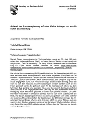 "content": "2 Antwort der Landesregierung erstellt vom Ministerium für Justiz und Gleichstellung 1. Wurden nach dem o. g. Bericht des MDR Ermittlungen wegen des Verdachts der Ermordung von Manuel Diogo eingeleitet und wenn ja, wann und durch welche Staatsanwaltschaft? 2. Sofern ein Ermittlungsverfahren geführt wurde bzw. noch geführt wird: a. In welchem Stand befindet sich das Verfahren derzeit? b. Falls das Ermittlungsverfahren eingestellt wurde, mit welcher Begrün- dung wurde es eingestellt? c. Wurden im Verlauf des Verfahrens die Unterlagen der Volkspolizei der DDR, die Gerichtsakten zu dem o. g. Gerichtsverfahren, die Stasi-Akten, Obduktionsberichte geprüft - soweit vorhanden - und wenn ja, mit wel- chem Ergebnis? Konnten den Akten die Namen von bei dem Tatgesche- hen anwesenden Personen entnommen werden? d. Wurden die bei dem Tatgeschehen anwesenden Personen ermittelt und vernommen? Wenn ja, mit welchem Ergebnis? e. Wurde durch die Behörden der DDR ein Täter ermittelt und wurde dieser verurteilt? Wenn ja, zu welcher Strafe wegen welcher Tatbestände und durch welches Gericht? f. Sind neben den Akten noch Asservate der damaligen Ermittlungen vor- handen und wenn ja, wo? Wurden diese Asservate untersucht? 3. Sofern kein Ermittlungsverfahren geführt wurde bzw. geführt wird: Wurde die Einleitung eines Ermittlungsverfahrens geprüft und wenn ja, wann und durch welche Staatsanwaltschaft und aus welchen Gründen wur- de kein Ermittlungsverfahren eingeleitet? Gemeinsame Antwort zu den Fragen 1. bis 3. Die Fragen der Abgeordneten verhalten sich zu einem Sachverhalt aus dem Jah- re 1986, der sich örtlich zwischen dem Haltepunkt Borne (Mark) und dem Bahnhof Belzig auf dem Gebiet des heutigen Bundeslandes Brandenburg zugetragen hat. Die Landesregierung von Brandenburg hat in der Drucksache 7/1328 des Landta- ges von Brandenburg, eingegangen: 23.06.2020/ausgegeben: 29.06.2020 die Kleine Anfrage Nr. 543 der Abgeordneten Andrea Johlige (Fraktion DIE LINKE) beantwortet und auf die bestehende Zuständigkeit der StA Potsdam (Bundesland Brandenburg) hinsichtlich eines bei dieser Behörde derzeit bereits geführten so- genannten Überprüfungsvorgangs zur Prüfung der Einleitung eines Ermittlungs- verfahrens hingewiesen. Es besteht keine Zuständigkeit einer Staatsanwaltschaft in Sachsen Anhalt.",