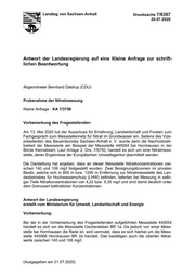 "content": "Landtag von Sachsen-Anhalt Drucksache 7/6367 20.07.2020 Antwort der Landesregierung auf eine Kleine Anfrage zur schrift- lichen Beantwortung Abgeordneter Bernhard Daldrup (CDU) Probenahme der Nitratmessung Kleine Anfrage - KA 7/3759 Vorbemerkung des Fragestellenden: Am 13. Mai 2020 lud der Ausschuss für Ernährung, Landwirtschaft und Forsten zum Fachgespräch zum Messstellennetz für Nitrat im Grundwasser ein. Seitens des Vize- präsidenten des Bauernbundes Sachsen-Anhalt e. V. wurde darin die Nachvollzieh- barkeit der Messwerte am Beispiel der Messstelle 445054 bei Hornhausen in der Börde thematisiert. Laut Anlage 2, Drs. 7/5750, handelt es sich um eine Nitratmess- stelle, deren Ergebnisse der Europäischen Umweltagentur übermittelt werden. Die Darstellung hat ergeben, dass an dieser Messstelle Nitratkonzentrationen zwi- schen 140 und 106 mg/l festgestellt wurden. Zwei Beregnungsbrunnen im privaten Besitz, welche sich in 800 m bzw. 1200 m Entfernung zur Nitratmessstelle des Lan- desbetriebes für Hochwasserschutz (LHW) befinden, lieferten bei Messung in selbi- ger Tiefe Nitratkonzentrationen von 4,22 bzw. 9,35 mg/l und sind damit deutlich unter dem Grenzwert befindlicher Konzentrationen. Antwort der Landesregierung erstellt vom Ministerium für Umwelt, Landwirtschaft und Energie Vorbemerkung: Bei der in der Vorbemerkung des Fragestellenden aufgeführten Messstelle 445054 handelt es sich um die Messstelle Oschersleben BR 1a. Da jedoch von einer Mess- stelle bei Hornhausen die Rede ist, wird vermutet, dass es sich hierbei um die Mess- stelle 445066 Hornhausen BR 2a handelt. Das bestätigen auch die zitierten Nitrat- werte zwischen 140 und 106 mg/l. (Ausgegeben am 21.07.2020)",