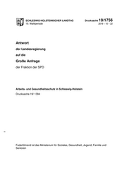 "content": "SCHLESWIG-HOLSTEINISCHER LANDTAG Drucksache 19/1756 19. Wahlperiode 2019 – 10 – 22 Antwort der Landesregierung auf die Große Anfrage der Fraktion der SPD Arbeits- und Gesundheitsschutz in Schleswig-Holstein Drucksache 19/ 1394 Federführend ist das Ministerium für Soziales, Gesundheit, Jugend, Familie und Senioren",
