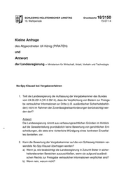 "content": "SCHLESWIG-HOLSTEINISCHER LANDTAG Drucksache 18/3150 18. Wahlperiode 15-07-14 Kleine Anfrage des Abgeordneten Uli König (PIRATEN) und Antwort der Landesregierung – Ministerium für Wirtschaft, Arbeit, Verkehr und Technologie No-Spy-Klausel bei Vergabeverfahren 1. Teilt die Landesregierung die Auffassung der Vergabekammer des Bundes vom 24.06.2014 (VK 2-39/14), dass die Verpflichtung von Bietern zur Preisga- be vertraulicher Informationen an Dritte (z.B. ausländischer Sicherheitsbehör- den) nicht im Rahmen der Zuverlässigkeitsanforderungen berücksichtigt wer- den darf? Antwort: Die Landesregierung nimmt aus verfassungsrechtlichen Gründen im Hinblick auf die Gewaltenteilung grundsätzlich keine Bewertung von gerichtlichen Ent- scheidungen, die stets eine richterliche Würdigung eines konkreten Einzelfal- les darstellen, vor. 2. Kann die Bewertung der Vergabekammer auf die von Schleswig-Holstein ver- wendete No-Spy-Klausel übertragen werden? a) Wenn ja, wie beabsichtigt die Landesregierung in Zukunft Bieter in sicher- heitsrelevanten Bereichen auszuschließen, wenn sie aufgrund ausländi- schen Rechts zur Preisgabe vertraulicher Informationen verpflichtet sind? b) Wenn nein, warum nicht?",