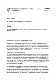 "content": "SCHLESWIG-HOLSTEINISCHER LANDTAG Drucksache 18/4739 18. Wahlperiode 2016-10-17 Kleine Anfrage der Abgeordneten Angelika Beer (Piratenfraktion) und Antwort der Landesregierung – Minister für Energiewende, Landwirtschaft, Umwelt und ländliche Räume Bojen entlang der Ostsee und der Nebenarmen Vorbemerkung: Immer wieder gibt es Anträge von Seglern um ihre Boote statt an einem Anker an einer Bojen fest zu machen. In den meisten Fällen scheitert dieses jedoch an der fehlenden Genehmigung durch das MELUR. Zudem sollen Mitarbeiter des MELUR Druck auf Antragsteller ausgeübt haben, so dass diese ihre Anträge zu- rück gezogen haben bzw. zurück ziehen mussten. Vorbemerkung der Landesregierung: Die Landesregierung stellt fest, dass seitens des MELUR in keinem Genehmigungs- verfahren Druck auf Antragsteller mit dem Ziel einer Versagung der Genehmigung ausgeübt wurde. Es ist vielmehr gängige Verwaltungspraxis, dass Antragsteller in Fällen, in denen aufgrund der Rechtslage eine Genehmigung voraussichtlich nicht erteilt werden kann, frühzeitig auf diesen Umstand hingewiesen werden. Dies ermög- licht Ihnen den Antrag freiwillig zurückzuziehen und so einen kostenpflichtigen Ab- lehnungsbescheid zu vermeiden. Ferner weist die Landesregierung darauf hin, dass das MELUR als oberste Natur- schutzbehörde nach § 1 Ziffer 1 der Naturschutzzuständigkeitsverordnung lediglich für die behördliche Entscheidung solcher Anträge für den Bereich der Küstengewäs- ser bzw. der Binnenwasserstraßen des Bundes zuständig ist, die nicht zum Gebiet einer Gemeinde gehören. Die Antwort der Landesregierung bezieht sich daher aus-",