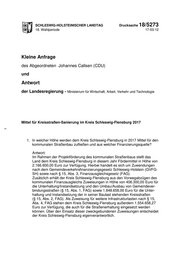 "title": "Mittel für Kreisstraßen-Sanierung im Kreis Schleswig-Flensburg 2017",