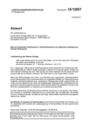 "content": "LANDTAG NORDRHEIN-WESTFALEN Drucksache 16/12957 16. Wahlperiode 19.09.2016 Antwort der Landesregierung auf die Kleine Anfrage 5056 vom 19. August 2016 des Abgeordneten Daniel Schwerd FRAKTIONSLOS Drucksache 16/12730 Mord an türkischem Familienvater in Holte-Stukenbrock mit möglichem rechtsterroris- tischem Hintergrund Vorbemerkung der Kleinen Anfrage „Wer seinen Bruder hasst, der ist ein Totschläger, und ihr wisst, dass kein Totschläger das ewige Leben bleibend in sich hat.“ Johannes der Apostel, NT, 1. Brief des Johannes (1.Joh 3,15) Am 7. September 1996 wurde in Holte-Stukenbrock (Kreis Gütersloh) ein Familienvater türki- scher Nationalität auf offener Straße erschossen, während er mit seiner kleinen Tochter auf dem Fahrrad unterwegs war. Der Täter sprang aus einem Gebüsch, feuerte sechs Schüsse auf das Opfer ab und entkam unerkannt. Der Vater starb vor den Augen seiner Tochter. Nach dem Bekanntwerden der Terror- und Mordserie des sogenannten „Nationalsozialisti- schen Untergrundes“( NSU) wurde eine Reihe von ungeklärten Altfällen zur Überprüfung eines möglichen rechtsterroristischen bzw. rassistischen Hintergrundes wieder aufgenommen, da- runter auch der genannte Fall. Durch die Arbeitsgruppe Fallanalyse des „Gemeinsamen Ext- remismus-/Terrorismusabwehrzentrums“ (GETZ) wurde dieser Fall identifiziert und durch das BKA den Landesbehörden zur Überprüfung und Bewertung übermittelt. Zu einer Überprüfung und Bewertung kann gehören, Zeug/innen zu vernehmen, alte Zeug/in- nen nochmal zu vernehmen, Asservate neu zu untersuchen, ggf. mit Methoden, die damals nicht zur Verfügung standen. Es stellt sich die Frage, welche dieser Maßnahmen durchgeführt werden bzw. wurden. Der Minister für Inneres und Kommunales hat die Kleine Anfrage 5056 mit Schreiben vom 19. September 2016 namens der Landesregierung im Einvernehmen mit dem Justizminister beantwortet. Datum des Originals: 19.09.2016/Ausgegeben: 22.09.2016 Die Veröffentlichungen des Landtags Nordrhein-Westfalen sind einzeln gegen eine Schutzgebühr beim Archiv des Landtags Nordrhein-Westfalen, 40002 Düsseldorf, Postfach 10 11 43, Telefon (0211) 884 - 2439, zu beziehen. Der kostenfreie Abruf ist auch möglich über das Internet-Angebot des Landtags Nordrhein-Westfalen unter www.landtag.nrw.de",