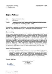 "title": "\"Umbenennungen\" von Objekten durch die Staatlichen Kunstsammlungen Dresden - Nachfrage zu Drs. 7/7287",
