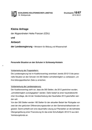 "title": "Personelle Situation an den Schulen in Schleswig-Holstein",