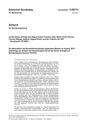 "subject": "Antwort der Bundesregierung auf die Kleine Anfrage der Abgeordneten Thomas Seitz, Martin Erwin Renner, Corinna Miazga, weiterer Abgeordneter und der Fraktion der AfD – Drucksache 19/19897 –",