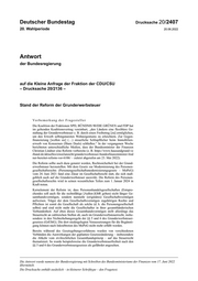 "title": "auf die Kleine Anfrage\n- Drucksache 20/2136 -\nStand der Reform der Grunderwerbsteuer",