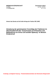 "title": "Umsetzung der gemeinsamen Vorschläge der Fraktionen im Abschlussbericht des \"Ausschusses zur Prävention und Bekämpfung von Armut und sozialer Spaltung\" im Bereich Kinderarmut",