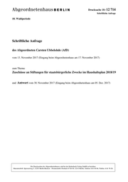 "title": "Zuschüsse an Stiftungen für staatsbürgerliche Zwecke im Haushaltsplan 2018/19",