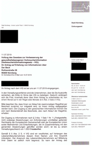 "Vollzug des Gesetzes zur Verbesserung der gesundheutsbezogenen Verbraucherinformation (Verbraucherinformationsgesetz - VIG); Ihr Antrag auf Erteilung von Informationen über Der Beck Rollnerstraße 28 90408 Nürnberg"