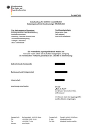 "sender": "Bundeszentrale für Kinder- und Jugendmedienschutz",