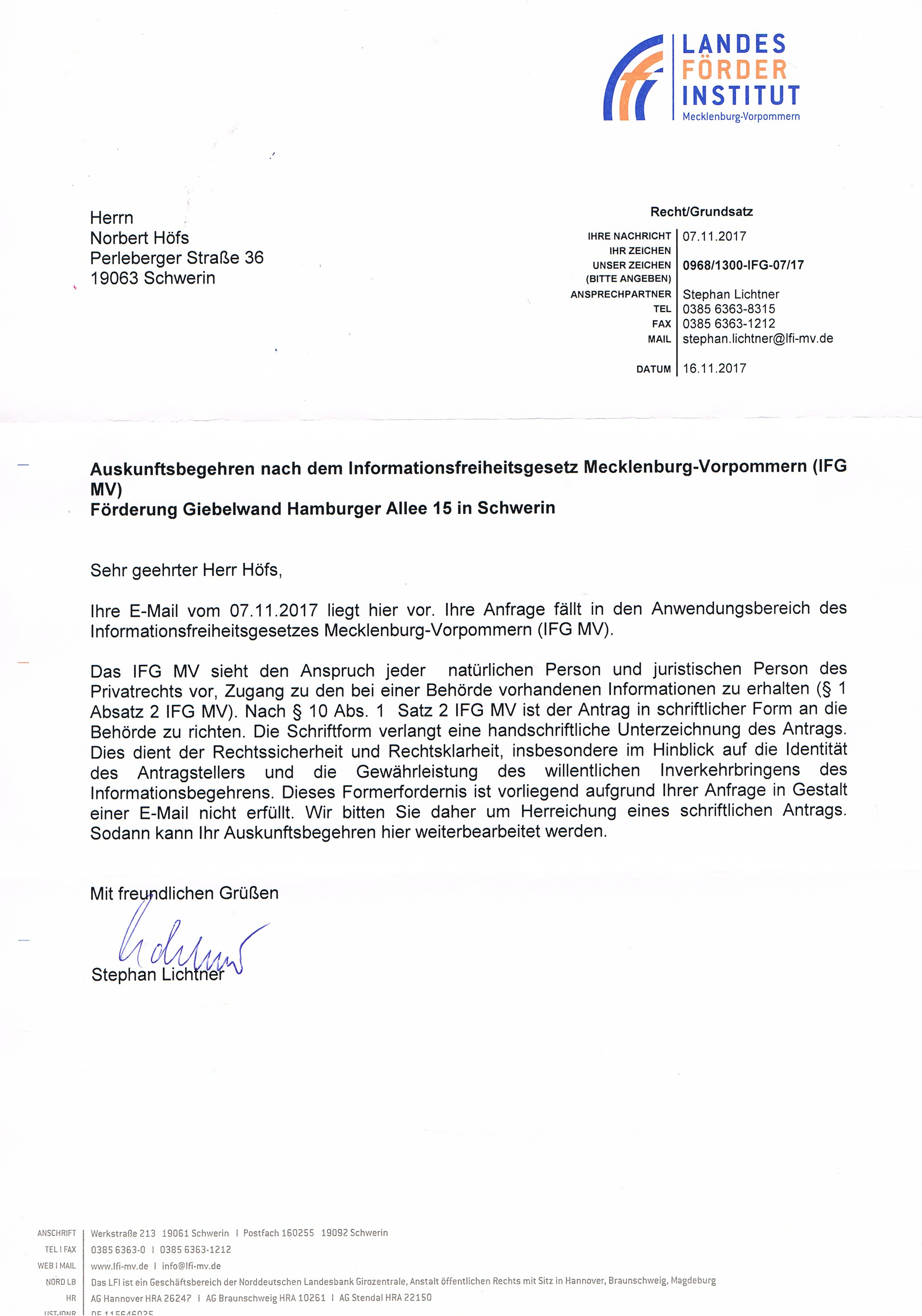 "Sehr geehrte Damen und Herren,\n\nich bitte um Vermittlung bei einer Anfrage nach dem Informationsfreiheitsgesetze Bund (IFG, UIG, VIG). Die bisherige Korrespondenz finden Sie hier:\n\nhttps://fragdenstaat.de/a/25223\n\nIch bin der Meinung, die Anfrage wurde zu Unrecht NICHT bearbeitet wurde.\n\nSie finden auch alle Dokumente zu dieser Anfrage als Anhang zu dieser E-Mail.\nSie dürfen meinen Namen gegenüber der Behörde nennen.\n\nMit freundlichen Grüßen\n"