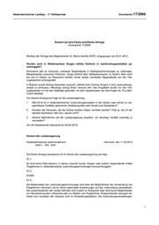 Niedersächsischer Landtag 17. Wahlperiode Drucksache 17/2966 Antwort auf eine Kleine schriftliche Anfrage - Drucksache 17/2829 - Wortlaut der Anfrage des Abgeordneten Dr. Marco Genthe (FDP), eingegangen am 20.01.2015 Wurden auch in Niedersachsen Drogen mittels Drohnen in Justizvollzugsanstalten ge- schmuggelt? Permanent gibt es Versuche, unerlaubt Gegenstände in Gefängniseinrichtungen zu verbringen. Beispielsweise versuchen Personen, Dinge schlicht über Gefängnismauern zu werfen. Aber auch am und im Körper von Besuchern werden immer wieder unerlaubte Gegenstände von den Voll- zugsbeamten sichergestellt. In Bremen wurde Anfang Dezember versucht, mithilfe einer Drohne Drogen in eine Justizvollzugs- anstalt zu schleusen. Allerdings schlug dieser Versuch fehl. Das Flugobjekt wurde von den Voll- zugsbeamten im Hof des Geländes gefunden. An dem Quadrocopter war eine Kugel mit 10 g Mari- huana befestigt. Vor diesem Hintergrund frage ich die Landesregierung: 1. Wie oft ist es in niedersächsischen Justizvollzugsanstalten in den letzten zwei Jahren zu ver- gleichbaren Vorfällen gekommen (Auflistung bitte nach Anzahl und Standorten)? 2. Konnten die Personen, die die Drohne bedient haben, ermittelt werden? Falls ja, wie ist der aktuelle Sachstand, falls nein, warum nicht? 3. Welche Maßnahmen will die Landesregierung ergreifen, um derartige Vorfälle zukünftig zu vermeiden? (An die Staatskanzlei übersandt am 03.02.2015) Antwort der Landesregierung Niedersächsisches Justizministerium Hannover, den 11.02.2015 - 4434 I – 304. 1042 - Die Kleine Anfrage beantworte ich im Namen der Landesregierung wie folgt: Zu 1: Es sind keine Fälle bekannt, in denen versucht wurde, Drogen oder andere Gegenstände mittels Flugdrohnen in niedersächsische Justizvollzugseinrichtungen einzuschmuggeln. Zu 2: Entfällt. Zu 3.: Die Bediensteten der Justizvollzugseinrichtungen sind über die Möglichkeiten der Verwendung von Flugdrohnen informiert und für deren potenzielle Auswirkungen auf den Justizvollzug sensibilisiert. Die Justizministerien der Länder befinden sich zudem im Austausch über technische Möglichkeiten zur Überwachung des Luftraumes oder zur Abwehr von Flugdrohnen. Entsprechende Lösungen be- finden sich vonseiten der Industrie noch im Entwicklungsstadium. Die Justizvollzugsverwaltungen, 1