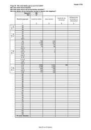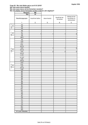 Kapitel: 0720 Frage 59: Wie viele Stellen gab es am 01.01.2018? Wie viele waren davon besetzt? Wie viele waren davon mit kw-Vermerken versehen? Wie viele Stellen mit kw-Vermerken wurden in diesem Jahr abgebaut? Ressort: MK Epl.: 07 Vollzug von kw‐ Anzahl der kw‐ Besoldungsgruppe Anzahl der Stellen davon besetzt Vermerken im Vermerken Jahresverlauf 1. 2. 3. 4. 5. LGr. 1 - A4 A5 1. EA A6 A6 LGr. 1 - A7 A8 2. EA A9 A9 Z A9 746 516 A10 1.102 973 A11 133 91 A12 74 59 A12 Z A13 1 1 LGr. 2 - A13 Z 7 5 1. EA A14 A14 Z A 15 A 15 Z A16 A16 Z A13 5.668 5.204 390 0 LGr. 2 - A14. 2.456 2.069 A15 822 728 2. EA A15 Z 144 122 A16 131 120 B2 B3 B4 B5 B6 B7 B8 B9 R1 R2 R3 R4 R5 R6 R7 R8 C1 C2 C3 C4 W1 W2 W3 R1 (richtl. Hilfskräfte) Seite 25 von 30 Seite(n)