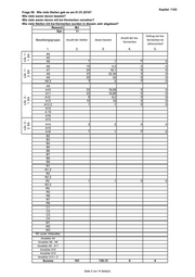 Kapitel: 1110 Frage 59: Wie viele Stellen gab es am 01.01.2018? Wie viele waren davon besetzt? Wie viele waren davon mit kw-Vermerken versehen? Wie viele Stellen mit kw-Vermerken wurden in diesem Jahr abgebaut? Ressort: MJ Epl.: 11 Vollzug von kw‐ Anzahl der kw‐ Besoldungsgruppe Anzahl der Stellen davon besetzt Vermerken im Vermerken Jahresverlauf 1. 2. 3. 4. 5. LGr. 1 - A4 A5 12 6 2 0 1. EA A6 10 10 0 0 A6 2 0 0 0 LGr. 1 - A7 47 19 29 0 A8 17 16 2 0 2. EA A9 9 8 1 0 A9 Z 4 4 0 0 A9 A10 10 9 3 0 A11 10 8 0 0 LGr. 2 - A12 4 4 0 0 A13 3 3 0 0 1. EA A13 Z A14 A 15 A16 A13 LGr. 2 - A14 2. EA A15 1 1 0 0 A16 B2 B3 B4 B5 B6 B7 B8 B9 R1 139 138 54 0 R1 Z 19 12 0 0 R2 75 66 13 0 R2 Z 7 6 0 0 R3 15 15 0 0 R3 Z R4 2 2 0 0 R5 R6 R7 R8 1 1 0 0 C1 C2 C3 C4 W1 W2 W3 R1 (richtl. Hilfskräfte) Anwärter A4 Anwärter A6 - A8 Anwärter A9 - A11 Anwärter A12 Anwärter A13 Anwärter A13 + Z Summe 387 328 104 0 Seite 6 von 14 Seite(n)