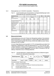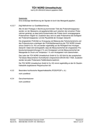 TÜV NORD Umweltschutz nach § 29 b BImSchG bekannt gegebene Stelle Selektivität: Eine eindeutige Identifizierung der Signale ist durch das Messgerät gegeben. 4.3.2.7 [Hg] Maßnahmen zur Qualitätssicherung Alle mit dem Probegas in Berührung kommenden Teile des Probenahmeapparatur werden vor der Messserie und gegebenenfalls auch zwischen den einzelnen Probe- nahmen gereinigt, so dass keine Kontamination der Proben durch vorangegangene Probenahmen möglich ist. Zusätzlich dazu wird vor jeder Probenahme die Dichtigkeit der Probenahmeapparatur und die Plausibilität der Anzeigen überprüft. Die eingesetzten Prüfmittel zur Erzeugung und Messung des Teilvolumenstroms und des Probevolumens unterliegen der Prüfmittelüberwachung der TÜV NORD Umwelt- schutz GmbH & Co. KG und werden regelmäßig auf die Richtigkeit ihrer Anzeigen überprüft. Dabei wird sichergestellt, dass die Messunsicherheit der eingesetzten Pro- bevolumenmesseinrichtungen 2 % vom Anzeigewert und die Messunsicherheit der Messgeräte für Druck und Temperatur 1 % vom Anzeigewert nicht überschreiten. Das Labor der TÜV NORD Umweltschutz GmbH & Co. KG führt für den analytischen Teil dieses Messverfahren Kontrollkarten entsprechend DIN EN ISO 17025. Zusätzlich werden bei jeder Probenserie Feldblindwerte bestimmt. Die TÜV NORD Umweltschutz GmbH & Co. KG nimmt regelmäßig an den für Staubin- haltsstoffe angebotenen Ringversuchen teil. 4.3.3 Besondere hochtoxische Abgasinhaltsstoffe (PCDD/PCDF u. ä.) nicht zutreffend 4.3.4 Geruchsemissionen nicht zutreffend Betreiber: Gemeinschaftskraftwerk Hannover GmbH Messbericht Bericht Nr.: 8000 666 992/ 218 EFK 135 / EMS Block 2 Seite 21 von 27