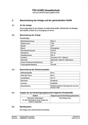 Angabe der laut Genehmigungsbescheid möglichen Einsatzstoffe