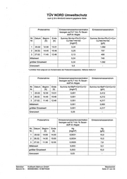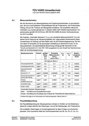 TÜV NORD Umweltschutz nach 8 29 b BImSchG bekannt gegebene Stelle Mn, Ni, und Sn. Dieser ist im Vergleich zu den Messungen aus 2014 erhöht und nicht plausibel. Als Hauptursache muss eine mit Kaliumpermanganatlösung kontaminierte Probenahmeapparatur angenommen werden. TÜV NORD Umweltschutz GmbH &Co. KG Der Sachverständige Fachlich Verantwortlicher (Vertreter) Dipl.-Umweltwiss. Markus Feldmann Dipl.-Ing. (FH) Torsten Kalbach 7 Anhang - Anlage zum Messbericht Seite Volumenstrombestimmung ° 1-3 Berechnung der HF-Emissionen 4 Berechnung der HCI-Emissionen 5 Berechnung der Schwermetall-Emissionen 6-8 Berechnung der Hg-Emissionen 9 Berechnung der Dioxin-Emissionen 10-11 Werteverlauf der kontinuierlich gemessenen Komponenten und Parameter: 12 - 14 Betreiber: Kraftwerk Mehrum GmbH Messbericht Bericht Nr.; 8000664993 / 818EFK028 Seite 33 von 33